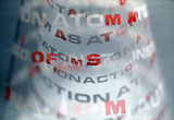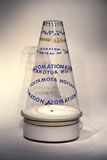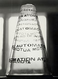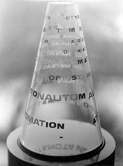 Letraset on perspex cone, motorised turntable, text by Liliane Lijn.