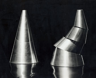 "A solid aluminium cone is presented, but at the touch of a hand its shape alters and its seemingly solid volume is lost. And just as Japanese Zen is the most elegant form of Eastern thought, so are these works the most elegant of Liliane Lijn's work. The problem and the solution to the problem are presented in a self-contained form that needs no further explanation."