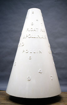 I used a simple numerological system to analyse Apollinaire’s name numerically and separate it into different words, ie: Apollo, in, air. From these other words came, and a ‘word- number poem’ developed in which each word related to a specific number.