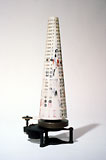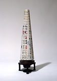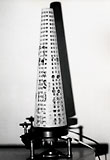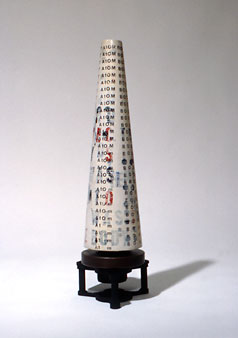 letraset and paint on wood cone, turntable, motor; text Nazli Nour.