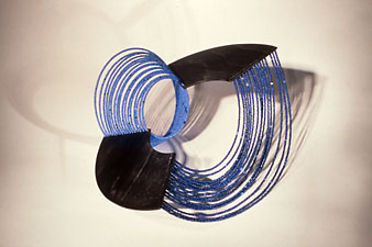 There is a relationship between beads and bees. The way I have used piano wire coated with beads alludes to halos in Renaissance paintings. It seems that the origins of saintly halos derive from the historical fact that bees were seen to swarm around the heads of Hindu and Buddhist saints.