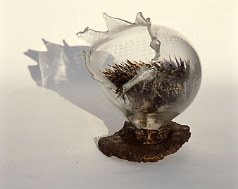 I experienced this place as a theatre and the making of the glass as an ancient ritual drama with at its centre, fire. The roaring pot seemed to represent the earth’s core, the eternal womb, surrounded by small moving working male makers.
