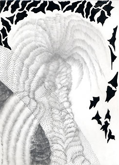 The illustrations took months to complete and as I progressed through each Song of the book, I felt as if I were inventing new ways to draw. Song 14 Unfolding was a critical turning point in that I needed to express destruction and aggression which I had not previously confronted within my work.