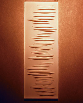 Cuttings are negative reliefs. The slices of saw-blade cuts made in a clear Perspex sheet are perceived as solid relief casting shadows on the back surface of the sheet, whereas the solid uncut area of the sheet is perceived as empty. The original concern of these early works was the interchangeability of opposites, i.e. that negative and positive were so close as to be indistinguishable.