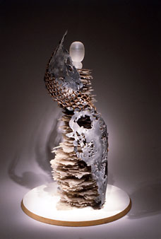I conceived Dark Angel as a protecting figure in a moment of inner darkness. Her wings are made of lead. The idea of having wings whose weight inhibits flight expresses the frustration of so many desires.