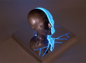 Patinated bronze, cast glass, argon, stainless steel box.