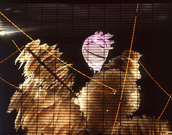 For many years I have felt that the forms of the energy industry, ie cooling towers, oil refineries, electrical transformers, were symbols related to our inner landscape. The great female archetypes have been locked up and hidden in the underworld. The huge transformers had appeared to me in their cages with their outstretched arms sparking electricity into the darkness as ikons of the great goddess of our time.