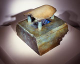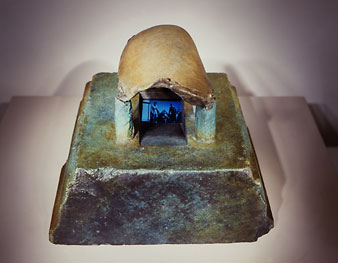 Patinated bronze, video, painted mdf base, television monitor and video cassette player.