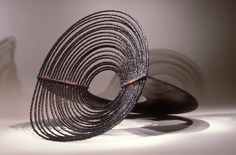 Pine, plywood, piano-wire, glass beads.