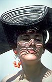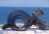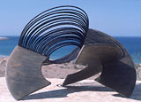 The studies for Heads gradually became Head-dresses. These are sculptures to wear, head ornaments and symbols of the head. In particular, I play with geometry, collapsing and folding circular planes or segments of rings, using piano wire and beads as a flexible mobile extension of the plywood shapes. I use beads for colour. The multiplicity and repetition of identical elements interest me because I see this as a mirroring of atomic structures and their interplay.