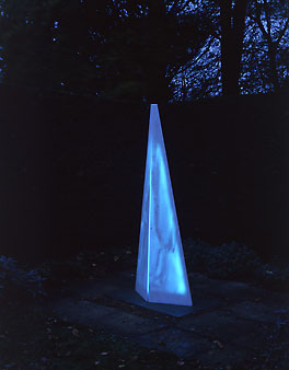 Inner Light II is also an example of my interest in geometry. In plan it consists of 2 juxtaposed equilateral triangles, whereas in elevation one side is at right angles to the base. This results in an apparent inclination.