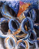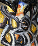A set of 3 drawings of the same figure in soft pastel, oil pastel and pencil.
