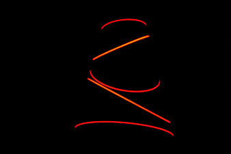 Red Line Koan and Acid Lava Koan are layered with elliptical coloured sections lit from inside. The cones spin slowly at a constant speed so that the viewer’s eye focuses on the lines, which in turn appear to dissolve the volume of the sculpture. It is as if the lines move through the volume, whereas, in fact, the volume is spinning as a whole.