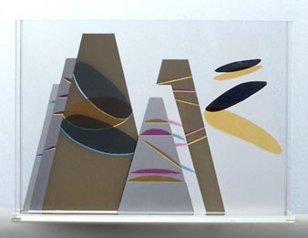 Part of the series of works in which I segmented cone forms, these translucent cut letra-film collages relate both to the larger Koan sculptures and to the Koancut silkscreen print series.