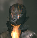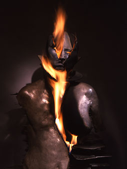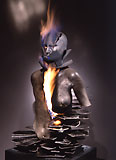 Patinated bronze, flogopite mica, gas, brass and stainless steel fittings.