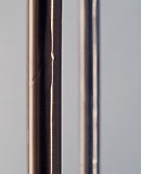 244 cm high x 2 cm diameter stainless tube wound with 0.006" copper wire and 0.004" nickel wire in alternate strands. Top 10 cm left unwound and painted white with one 1.5 cm grey horizontal stripe.