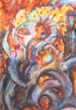 Flower Bride, Marriage of Heaven and Hell and the Transformation of the Bride into the Medusa Triptych are drawings which were made as a way of conjuring up the Bride sculpture installations. In them I imagined the inner bride, the numinous and as yet featureless archetypal figure of the betrothed or possessed feminine.
