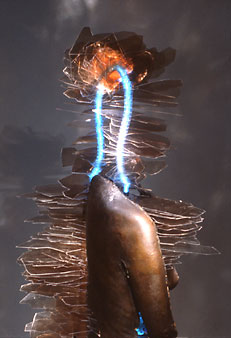 The finished work portrays simultaneously the physical body and the psyche. It is both fragmented and yet whole, layered and luminous. Its fragility and its aggressive power convey the tensions between the inner and the outer self.