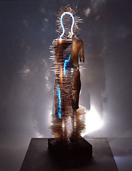 Skin is a living surface. I wanted the body to appear as a living skin or shell. And more important I wanted to find a way of expressing the energy within the body.