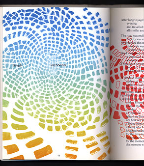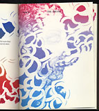 Each book is unique because the artist entered the press, distributing the colours and varying the flow of inks throughout the printing. Crossing Map uses language as a mirror for our culture, avoiding the use of nouns and punctuation, and inventing a new prose structure.