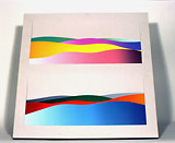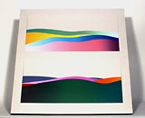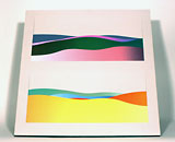 Each undulating cut-out of the eight Landlines is printed on both sides, a blend on one surface with a grey derived from the blended colour on the reverse. The number of permutations for relationships between these sixteen forms and colours is in the order of 16 factorial.