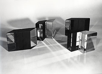 From these, I created a number of different shapes, each made of two prisms, which could be put together like a jigsaw puzzle to fit into a square, rectangular or rhomboid velvet-lined box.