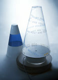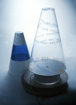 letraset on perspex cone, motorised turntable, text by Liliane Lijn.