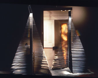 Queen of Hearts, Queen of Diamonds embody many of the essential characteristics of my work. Based on the idea that structure is born from the interaction of negative and positive elements, they are many-layered, conical, both material and immaterial and derived from the radiating reflective facets of a prism.