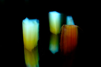 Illuminated by video footage of ancient temples, people working or dancing, city streets and markets, all that make up particular cultures, Aerogel dissolves these images into constantly changing strata of colour and light, blurring and erasing our carefully constructed meanings.