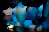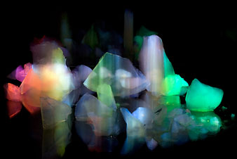 A disc and a cone of aerogel have broken into fragments. Each installation is an attempt at renewal but can only represent a fragmented memory, a ruin. The video projected onto this installation, Visions of the East, is a compilation of images -memories from my travels in Southern India in 2003.