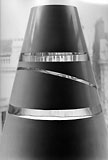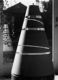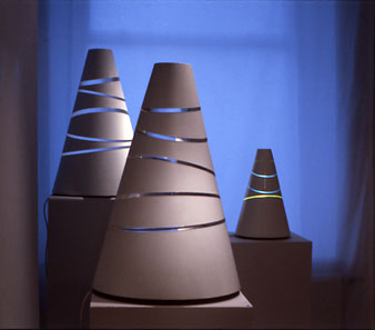 61cm high 41 cm base diameter fiberglas cone intersected by 5 elliptical layers of 3/8" perspex on turntable.