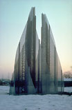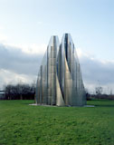 The sculpture is composed of 8 parabolic vanes, each curving around the preceding one in what appears on plan to be a spiral armed shape. The overlapping parabolic layers of perforated steel create large-scale interference patterns. When back-lit, the sculpture appears transparent, when front-lit, opaque.