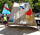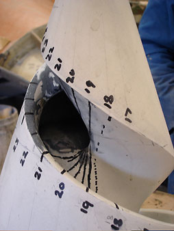 It was a great challenge to conceive of a sculpture that was also a helter-skelter. To mould a spiral slide into a cone was an extremely complex technical problem. This was solved in a masterful and economic way by Peter Walde of Westward Mouldings Ltd. Once I had agreed a 10:1 scale fibreglas model, Peter cast the slide in 24 sections.