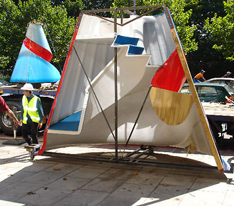 Starslide had to be made in 3 separate sections; a 2 m top section and the 3 metre high base section split into 2 pieces from top to bottom. We had to do this in order to get the sculpture into the building, where the 3 parts, once hoisted into position, had to fit perfectly together again.