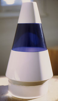 In Green Line Cone and in Breathing Cone I found that by altering the way I passed light through perspex, either through the edge or through the sheet, the quality of light changed dramatically. In Breathing Cone the blue area pulsates as the cone spins, slowly, as if the cone were breathing.