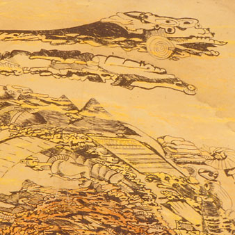 I think of this drawing as an archetype of my work. In it I created a cosmic map of my own beginning. All the possible creations of my unconscious whirling around and separating out from a fiery and as yet condensed central core.