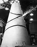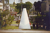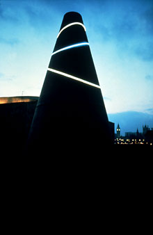 As the cone revolves, the neon ellipses expand and contract the spaces between them. At night the cone dissolves into the shadows, leaving the neon rings floating in the dark space. Purchased by the University of Warwick, Coventry in 1972, the sculpture is now sited in front of the Art Centre of the University.