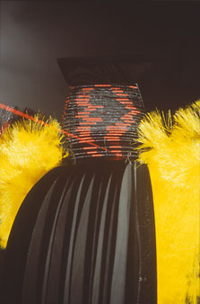 I gave the body and head of the sculpture a more complex form. I wanted the sculpture to come alive and decided that it would enact the drama of the song. It then became apparent that Woman of War would sing to Lady of the Wild Things which would respond to the song with light.