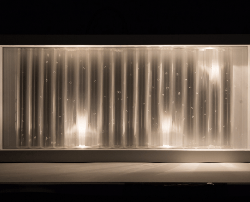 Liquid Reflections were Lijn’s first and most complex works with water and light. The Liquid Reflections series, inspired by her interest in astronomy and the physics of light, was the outcome of 5 years of experimental work with plastics and fire, acrylic polymers, lenses, prisms, light and finally water. read more